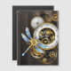 アンティークダイアル金ゴールドと真鍮ギア、茶色飾の機械的なトンボ、バックストライプのグラウンド。ステームパンク。