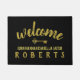 歓迎されたクラシックで黒い金ゴールドブラシストローク姓 ドアマット
