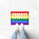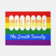歓迎、スミス家族またはあなたの文字のタイポグラフィのゲイプライドLGBTの陽気なレズビアンのトランス・ジェンダーの両性の虹の旗のドア・マット