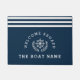 青いと名ストライプ前の詳細と要パーソナライズされた素を持つボートマット航海のカラーと文字は編集可能である。