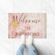 歓迎はピンクのシックな花を個人化します ドアマット