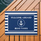 ようこそ航海のいかりロープネイビー青と白のストライプ船名ドアマット