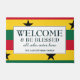 歓迎賛美 |カスタマイズ可能な姓を持つガーナ国旗。"スタイリッシュWELCOME & BE ALL WHO ENTER HERE 賛美 plus placeholder name"の文言と愛国的な歓迎の形式。背景はガーナのブラックスター国旗。すべての文字はカスタマイズ可能で、例えば家族の名前、家族のモットー、引用文を追加する必要に応じて用語を修正でき感動的る。