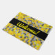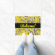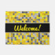 歓迎! + 黄色および灰色は正方形パターンをタイルを張りました ドアマット