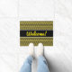 このドア・マットの設計特微黄色および黒い波状ラインパターン。 それはまた特色にしますフレンドリーな挨拶"歓迎!"を 黄色い原稿そっくりの文字の前部。