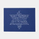 アイザイアの54:17からの単語と形作られた"武器が繁栄しないあなたに対して形作られる(Magen David)ダビデの星が付いているドア・マット、および判断の反旗を飜すあらゆる舌は間違って証明します。 これはYHVHの使用人の伝統であり、正義は私のsaith YHVHです"。 濃紺の背景色の白い文字。