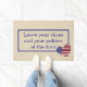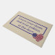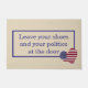 この玄関マットはフォークを何でも政治述べるように誘います。 それに好めばあなたが取除くことができるハート形の米国旗があります。 好めば文字および背景色を変えることができます。