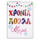 彼女の聖名祝日のあなたの母のためのおもしろい明るいカード。 それはカラフルなレタリングおよびお祝いの旗布を特色にします。 そしてそれはギリシャ語、彼女の自身の言語のさらにもっと特別なあることです。 χρονια πολλα μαμα