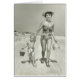 ビーチの息子(2-3)の歩くの母、(B&W)のポートレート|ジョージの印| AssetID: 57520344