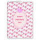 ピンクの花の模様とハートと文字の円を持つ母の日のカード:幸せな母の日。すべての文字が可能カスタマイズである