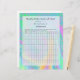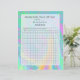 このページはバインダーに入れて、その月のすべての請求書をリストすることができる。これは請求書を満た保する良い方法なので、いつ支払うか覚えることができる。カラフルパステルデザインの背景に半透明の白い箱が付き、その後の毎月の手形チャートを持っている。あなたの姓または場所に置くことを選択してパーソナライズ。この店にあるその他のカラフルパステルデザイン商品にマッチ。エッジに沿ってパンチ穴を開けるか、保護スリーブでそれらを滑り澄ん落とすことができる。