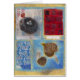 アジアテーマの混合メディアのコラージュ。 グワッシュの汚損の日本のなライスペーパーの鳥の巣の写真。 赤の広場のコラージュ。 日本語は印刷された木の紙を妨げます。 2つの葉はkinwashiの紙にcollaged。 幸運は読みます: 気持が良い驚きはあなたのための店にあります。