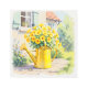 フローラアートワーク黄色い散水の中で黄色い花の素敵なイラストレーションは、家の側の歩道の外に座ることができる。夏のかわいらし水彩愛イラストレーション。