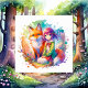 女かわいらしの子の部屋の水10代の色aiアート。ピンク、グリーン、ブルー、オレンジのアニメの女の子とキツネ。