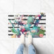 水かわいらし色サボテンフローラ黒ストライプ色 ドアマット