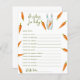 男女兼用ベビーシャワー招待状。ことわざ「小さなバニーが道に!」をフィーチャーした水色のバニー(ウサギ)とニンジンのイラストレーション、そしてオレンジ色のニンジンの多くの。一致する項目が使用可能。