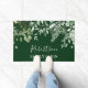 家族名キャビン水彩植物緑のDoormatは、ツタ、シダとセージのを含ん葉でいる。森の緑の背景。