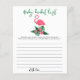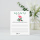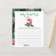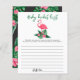赤ちゃんシャワー招待デザインは、緑豊かな緑のヤシの葉の葉の葉と熱帯ハイビスカスの花とピンクのフラミンゴを特徴とする。「アロハベビー」。黒い背景色のトロピカルフローラルパターンがカードの背面に着く。