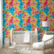 水カラフル色抽象芸術絞り染めパターン壁紙はカラフルモダンイエロー、レッド、パープル、オレンジおよびブルーのパターンを特徴とする。ホームデッキ、オフィス、パーティーの装飾に最適。Evco Studio www.zazzle.com/store/evcostudioによって作成