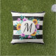 水クール色フローラブラックストライプのモノグラム アウトドアクッション