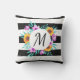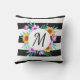 黒モダンと白の背景にフローラ水色リースを持つ屋外装飾用クッションストライプの。多くのカスタマイズ素晴らしいフォントから選んでモノグラムを。