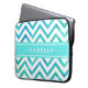 この保護シックな袖でスタイルしたノートパソモダンコン。デザインはかわいらし、アクアティール(緑がかった色)ブルーの水の色のシボロンジグザグパターン、ターコイズのストライプ文字、および名前や他のカスタマイズを含むタイポグラフィの白いフォントにシンプル。このエレガントトレンディーのコンピュータースタイリッシュケースは彼女に贈り物をする。