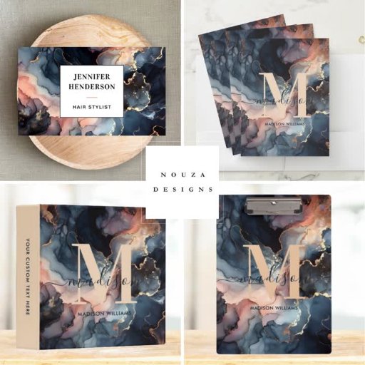水モダン色の大理石ブルーモダン金ゴールド&ブラックスクリプト名刺で洗練された体験。穏やかな青い水色の大理石と豪華な金ゴールドのアクセントの融合は、黒い台本と組み合わさお洒落れ、魅力的なデザインを作り出す。このカードを使用してプロフェッショナルの存在感を高め、モダンさとエレガンスをシームレスに融合して際立った表現を実現。