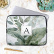 私たちの水モノグラムの色のセージ素朴緑のラップトップスリーブを導入。熱帯イラストレーションの離れ花束の水の色のと可能なモノグラムをカスタマイズ特集。自然愛好家に適している。