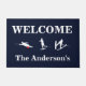 水スキー熱狂者の家のための完全なドア・マット。 このドア・マットはスラローム、トリックおよびジャンプのスキーヤーの白いシルエットを特色にします。 または望むものは何でも、のあなた自身の姓の文字、句カスタマイズ。 あなたのマット色を選んで下さい。