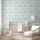 緑とティール(緑がかった色)の柔らかい色合いの美しい植物模様の水色スタイル。