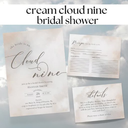 今回のエレガント招待お洒落は、新しいテーマ「on cloud 9」に最適だ。 水彩雲の背景とスクリプト文字を備え渦巻形のている。