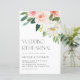 招待状ゲストは、このカスタマイズ可能なリハーサルのディナー招待であなたのイベントに。赤面、ピンクと白のバラ、ダリアと牡丹の水色フローラの花束を備えている。詳細を追加してパーソナライズこのフローラリハーサルのディナーの招待は、春と庭園の結婚式に最適である。