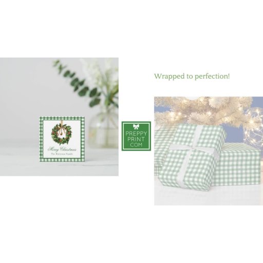 水彩グリーン&ホワイトギンガム ラッピングペーパー