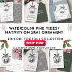 Watercolor Pine Trees / Nativity on Gray Ornament デザイン: Magdaline Annie Martin Oming