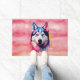 水彩シベリアのハスキーカラフルアート ドアマット