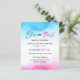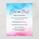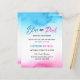 予算のベビー性がパーティの招待状を明らかにする。白い背景に、青とピンクの水の色絵を描が型枠縁どの。タイポグラフィ読文字ブルーかピンクは何考えだ?完全なイベントと詳細を前面連絡と背面に追加してパーソナライズ。