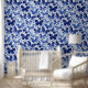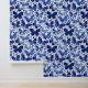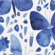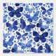 白い背景に藍色の水色の蝶のパターン。オリジナルアートby Nic Squirrell.