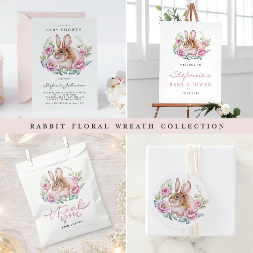 このカスタマイズ可能な招待状ブランチの招待状を使用して、イベントにゲストをベビー。ピンクと薄紫の花が咲き誇る可愛いウサギイラストレーションが特徴。フローラを追加して、この赤ちゃんシャワーの招待をパーソナライズする詳細。このウサギのベビーブランチの招待状は、任意のテーマや季節に最適である。