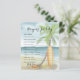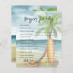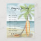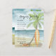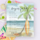ベビーを乗せ!赤ちゃんシャワーの招待 – 夏の赤ちゃんシャワーに最適。ビーチテーマ。水の色のデザインは、サーフボード、パームの木と夏の帽子と海とビーチのシーンを持っている。