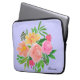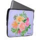 ペリウィンクル背景に水彩ピンクの花と緑の葉 コンピュータースリーブ