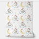 水の色ピンクのフローラベビー象の雲の上に星と眠い月の柔らかいミュート色で赤ちゃんの女の子の子供部屋の布や壁紙のための色。