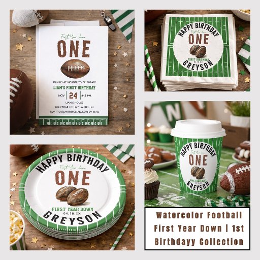 この水彩フットボール「ファーストイヤーダウン」1歳誕生日招待状で、あなたの小さなMVPの特別な日を祝いましょう! チャーミングな水彩フットボールのアートワークとスポーティなディテールが特徴で、あなたの将来のオールスターの最初の誕生日パーティーに最適です。 パーティーの詳細をパーソナライズして、タッチダウンセレブレーションの準備をしましょう!