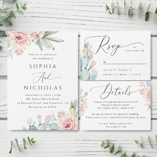 水彩フローラサボテンとベビーガール誕生日パーティーの招待。連絡お願いもし追加のアイテム