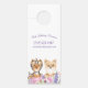 かわいい水色のフローラ犬ペット座ってグルーミングサービスのビジネスドアハンガー。自分のビジネス名と詳細でカスタマイズして自分で作る。のプロモーション広告目的に最適。