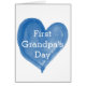 水パーソナライズされた色の青いハートを備えた父の日のための幸福の最初のおじいちゃんの日のカードは、"最初の父の日"と言う。内側のカードメ読ッセージは、簡単に編集できる甘い気持ち。1st Father's Dayカードの裏には、年と同じ水色ハートが付いており、簡単に編集できる。