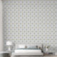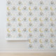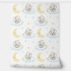 水の色のベビー象の雲の上に星と眠い月の柔らかい消色の色で男の赤ちゃん子供部屋の布と壁紙。