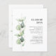 卒業の年、名前、詳細を日付と共に加えることで、このカード上の用語を完全に変更する私たちの"パーソナライズ"ボタンを使用しモダンて、ダークグレーのタイポグラフィ卒業パーティーの招待と白い背景を持つユーカリ緑化水の色デザイン。
