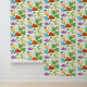 水色の可愛い恐竜のテーマヤシの木と火山の中性の子供とベビー子供部屋壁紙。