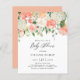 このカスタマイズ可能なフローラベビーシャワー招待であなたのイベントに招待状ゲスト。桃、オレンジ、アイボリーバラ、アジサイ、ユーカリのアクセントを持つ牡丹の水色フローラガーランドを葉特徴とする。お客様の詳細を追加して、この水色のベビーシャワー招待をパーソナライズする。この桃とクリームフローラの招待は、春の赤ん坊シャワーと赤ん男女兼用坊シャワーに最適。