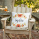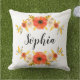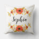 白い背景にサンゴの水色の花とカスタマイズ可能な文字を持つ屋外装飾用クッション。